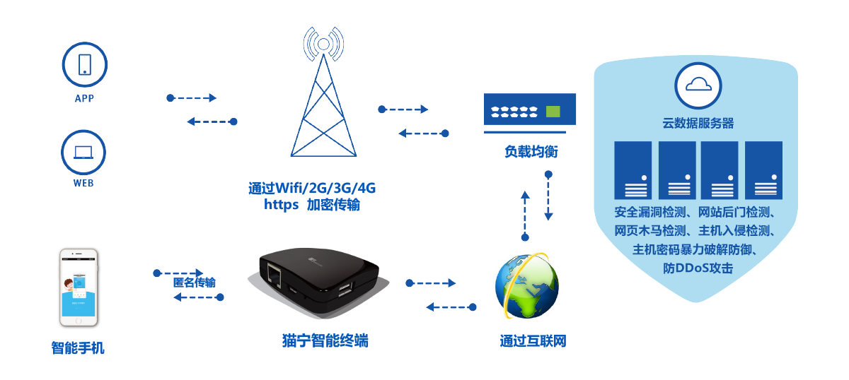 2通过网线上网。探针采集到的手机MAC地址通过网线实时上传到服务器后台;